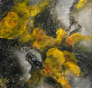 2016abstract mixed media op doek in groen zwart oker en grijstinten